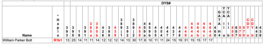 The following participants are descended from Benjamin Bolt, son of Sarah Bolt. Since Sarah was a female, the Bolt Y-chromosome from